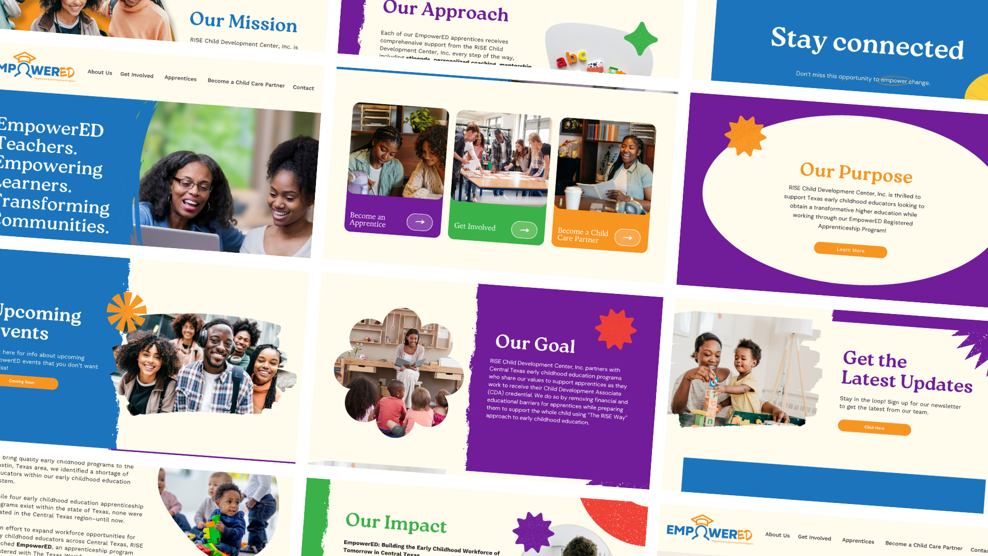 RISE Empowered is a developing program dedicated to supporting families through accessible, culturally responsive childcare and early education. I created the visual branding and designed the website to reflect the program’s uplifting and community-driven mission. Built in Canva, the site features intuitive navigation and a clean, welcoming layout that makes information easy to find and engaging to explore. Along with the website, I also developed a suite of branding assets to ensure a cohesive visual identity across digital and print materials.